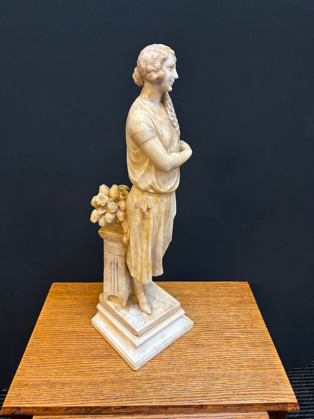 Art Deco Alabaster Maiden Statue in original condition