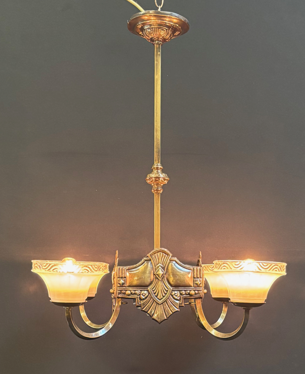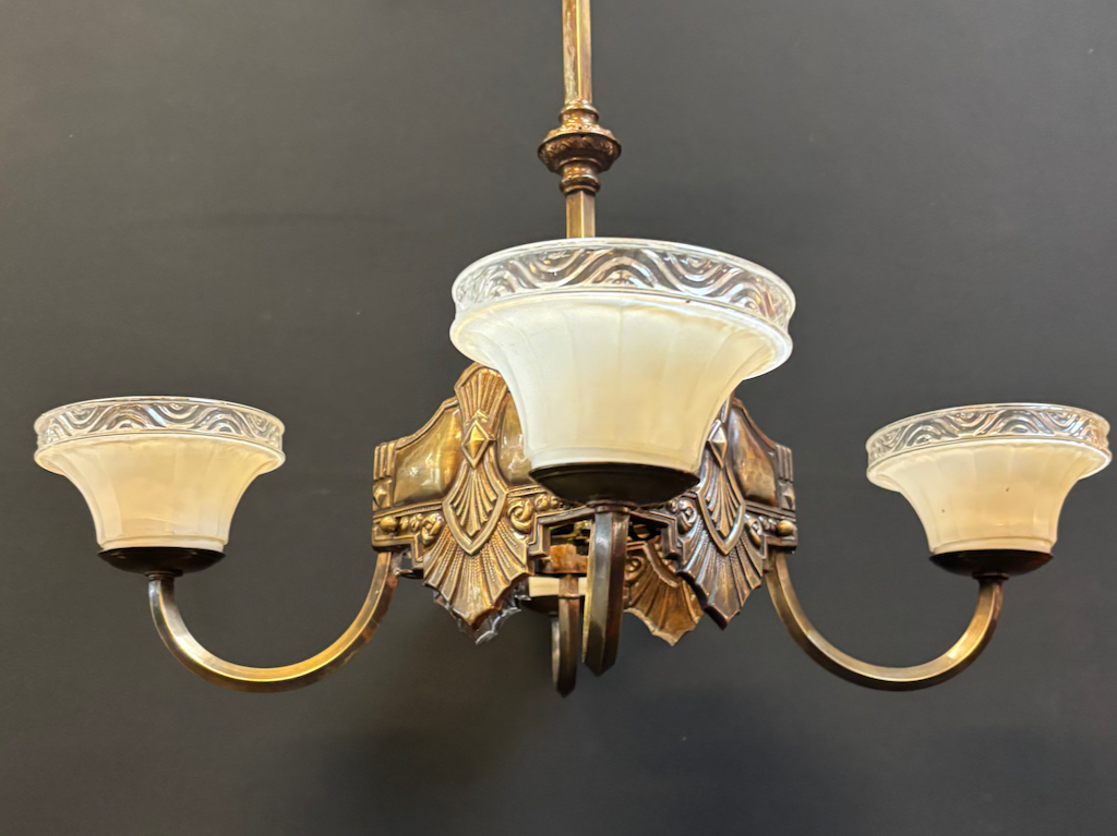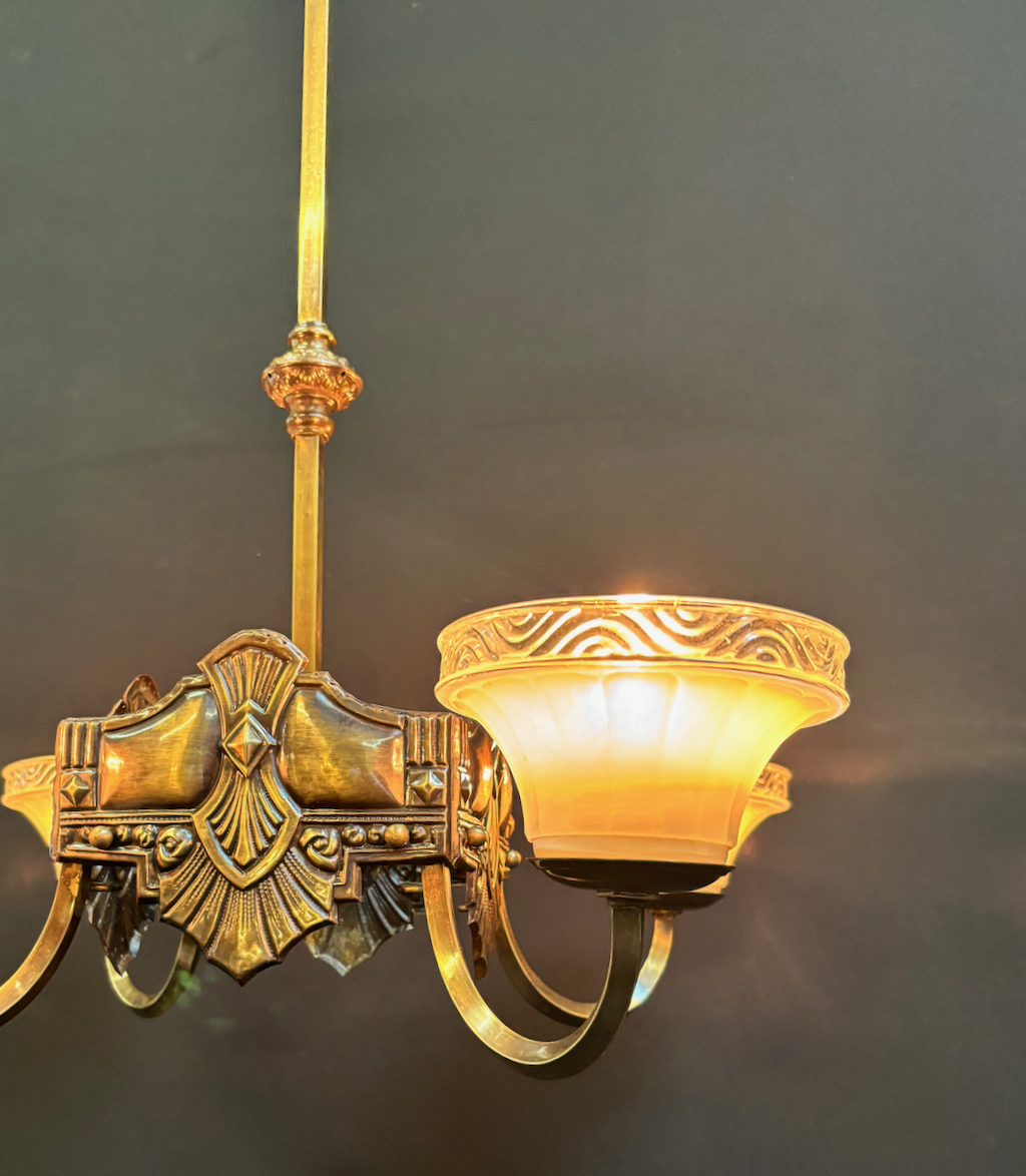 Original Art deco 4 arm pendant light in restored condition