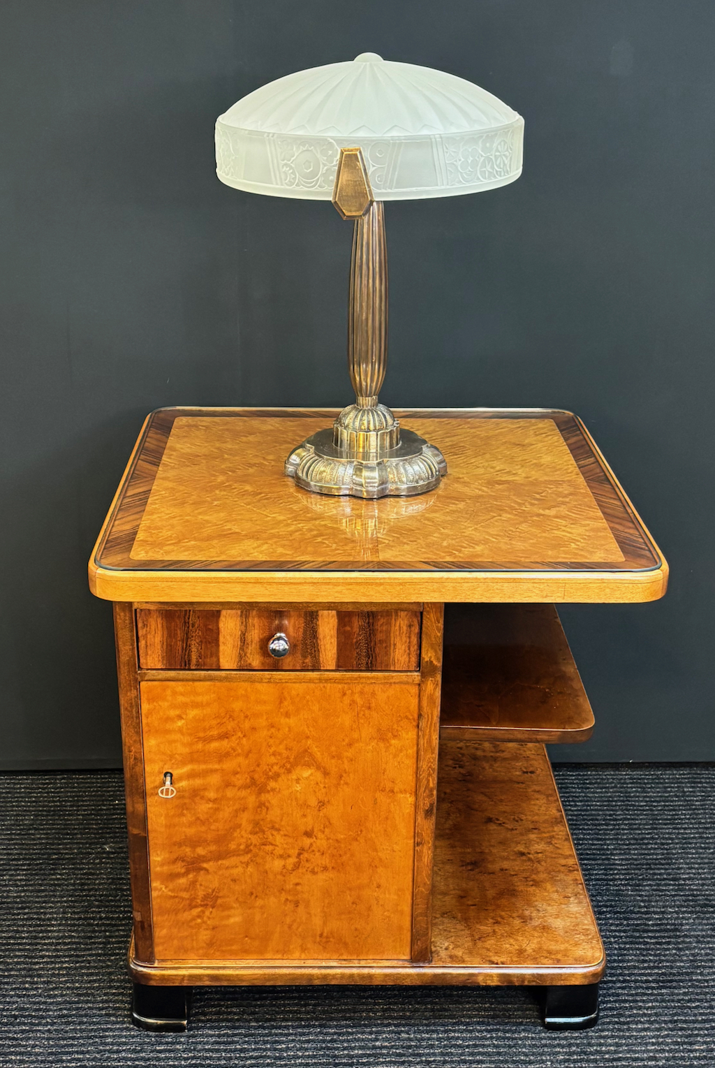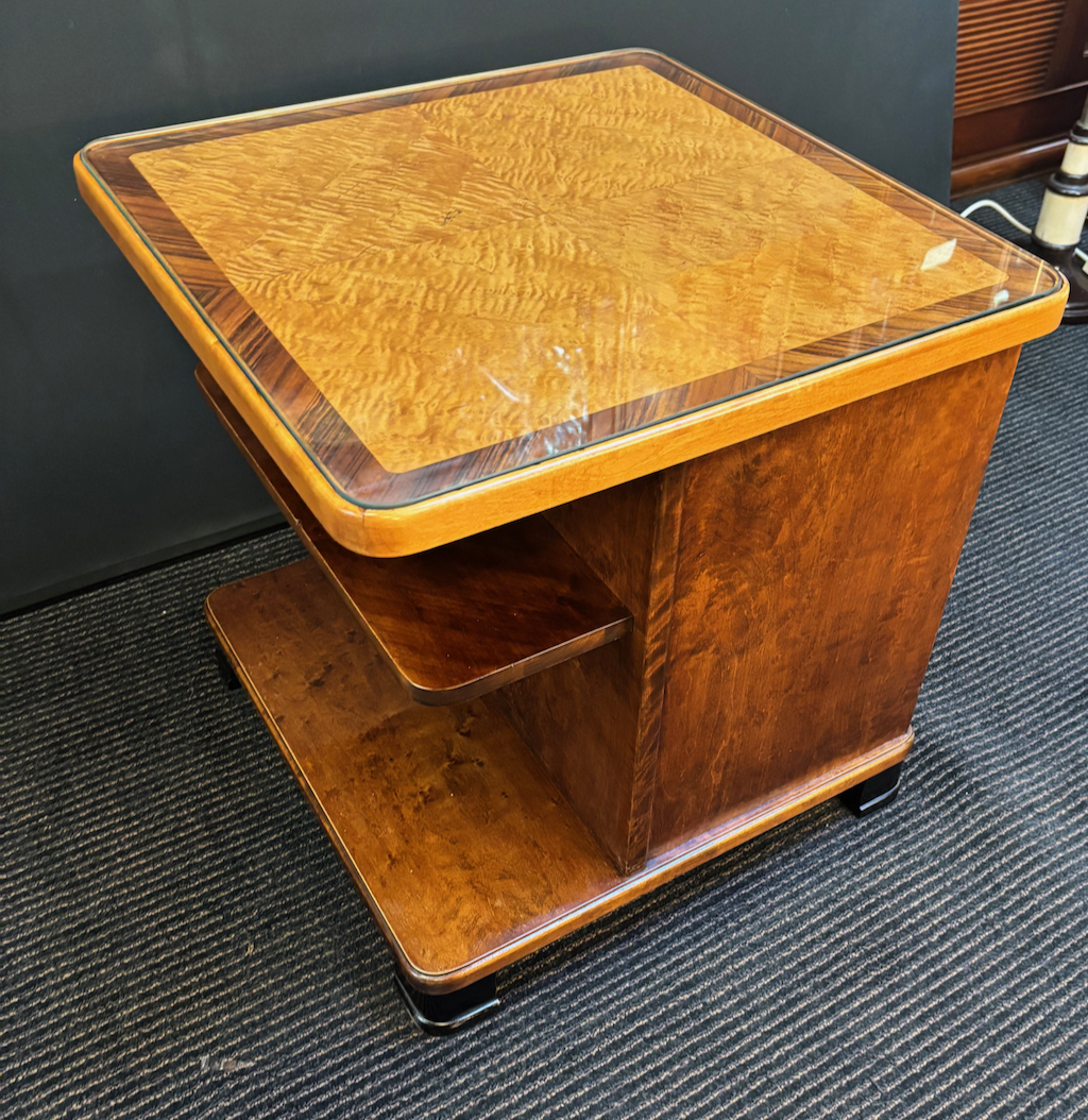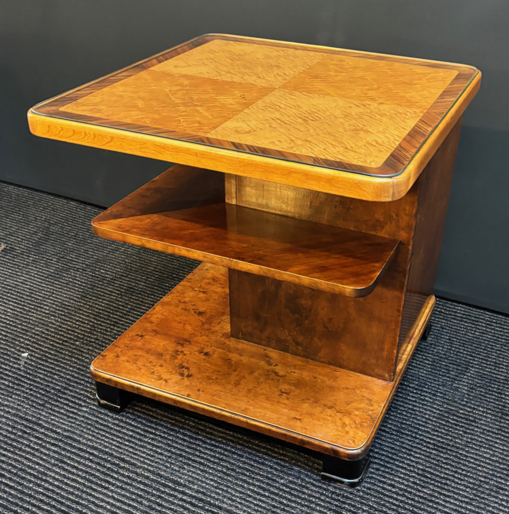 Great quality Swedish Art Deco occasional table in restored condition ,Figured birch and Walnut