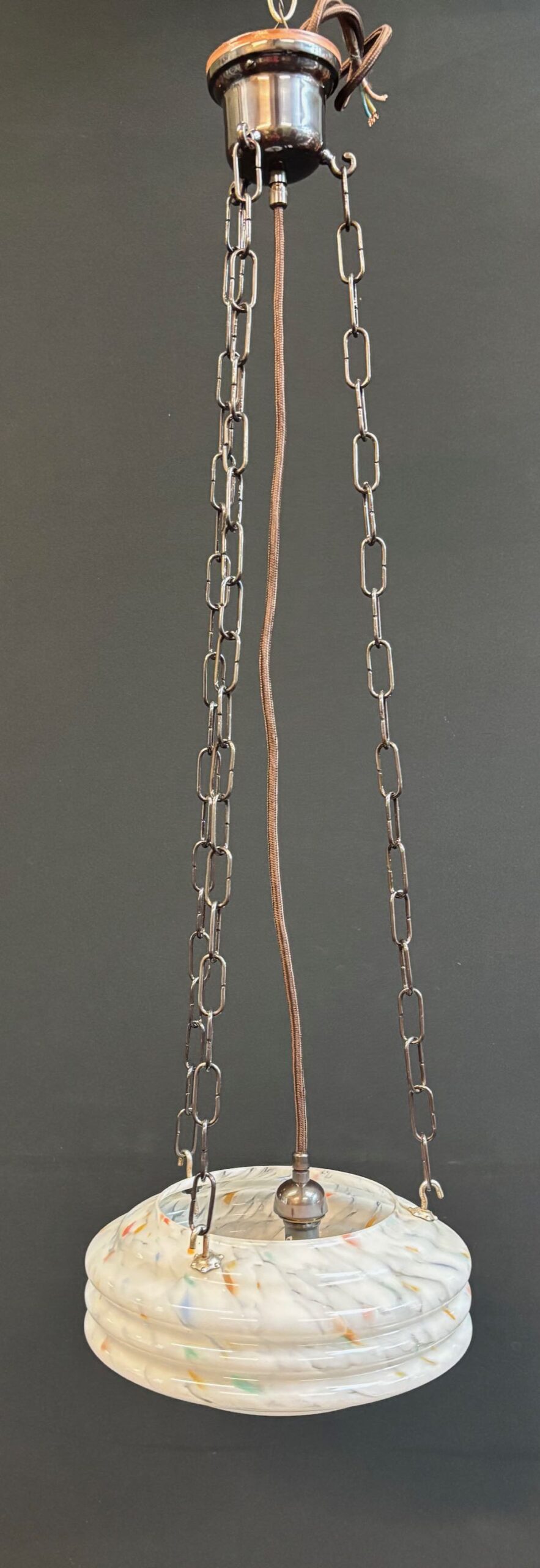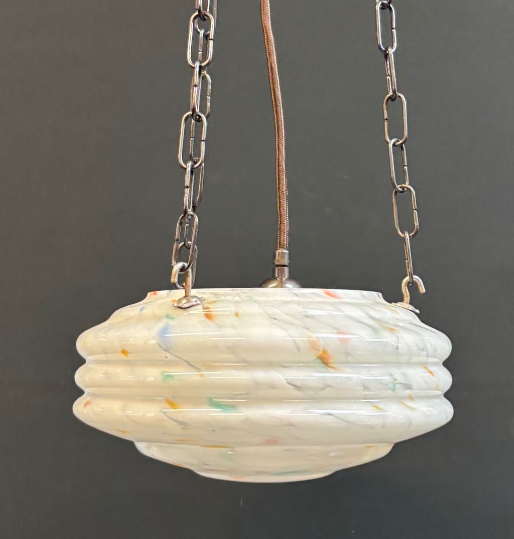 Quality English Art Deco white /orange/blue glass shade