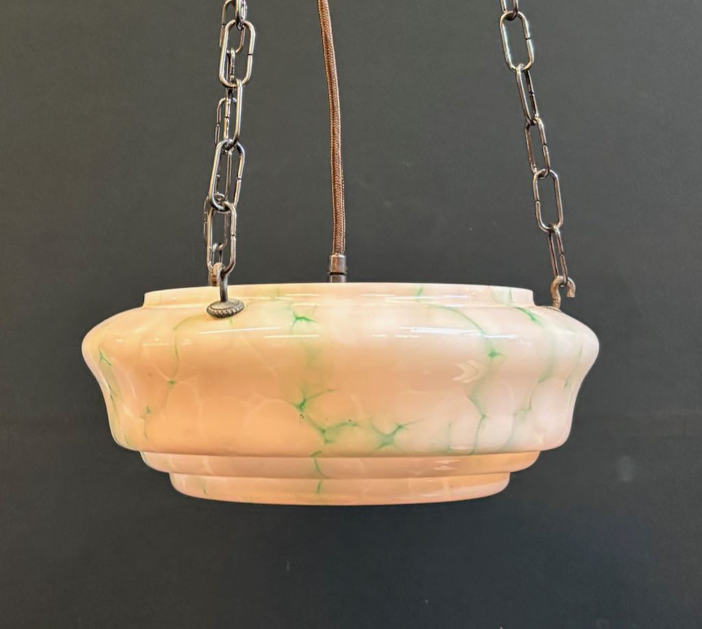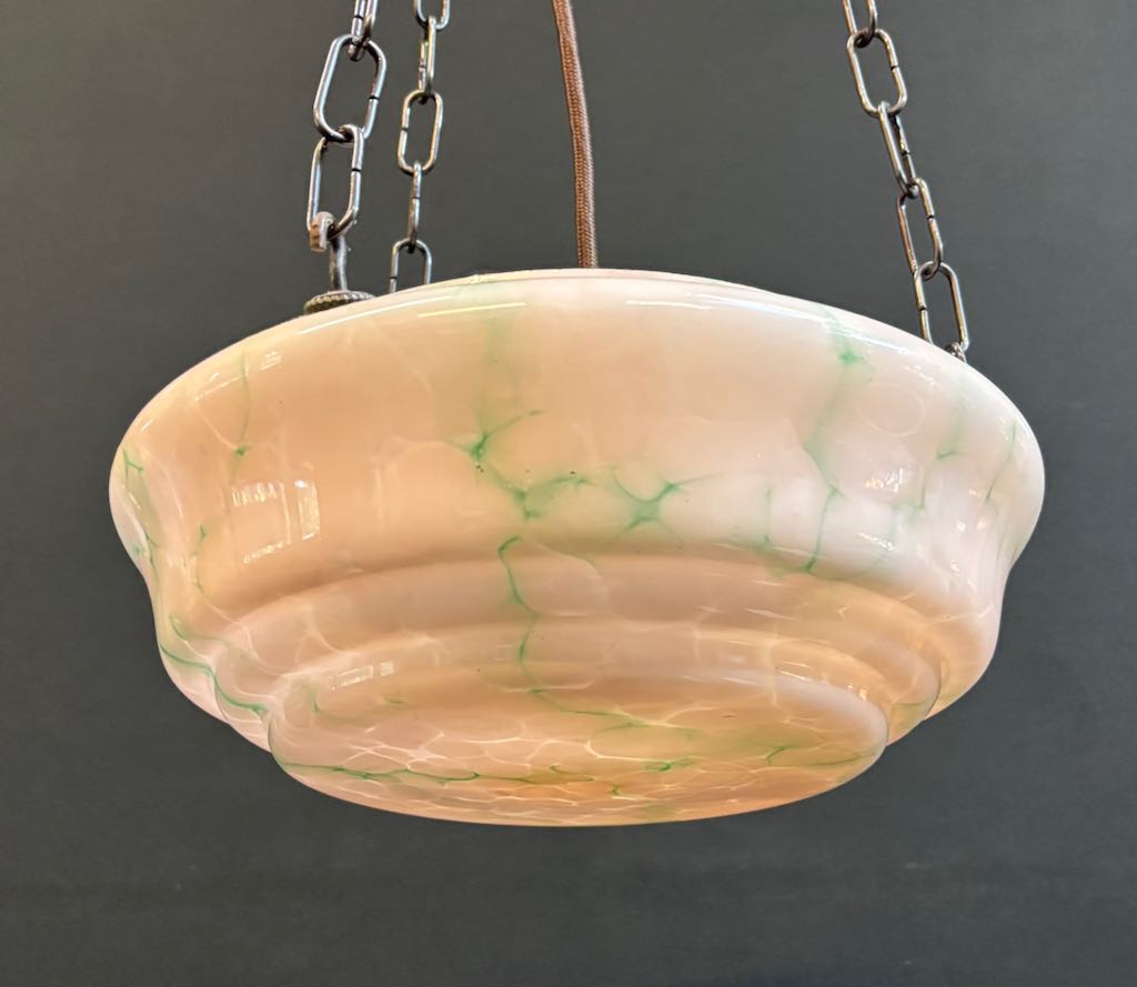 Good quality Art Deco shade with re wired three chain suspension fitting