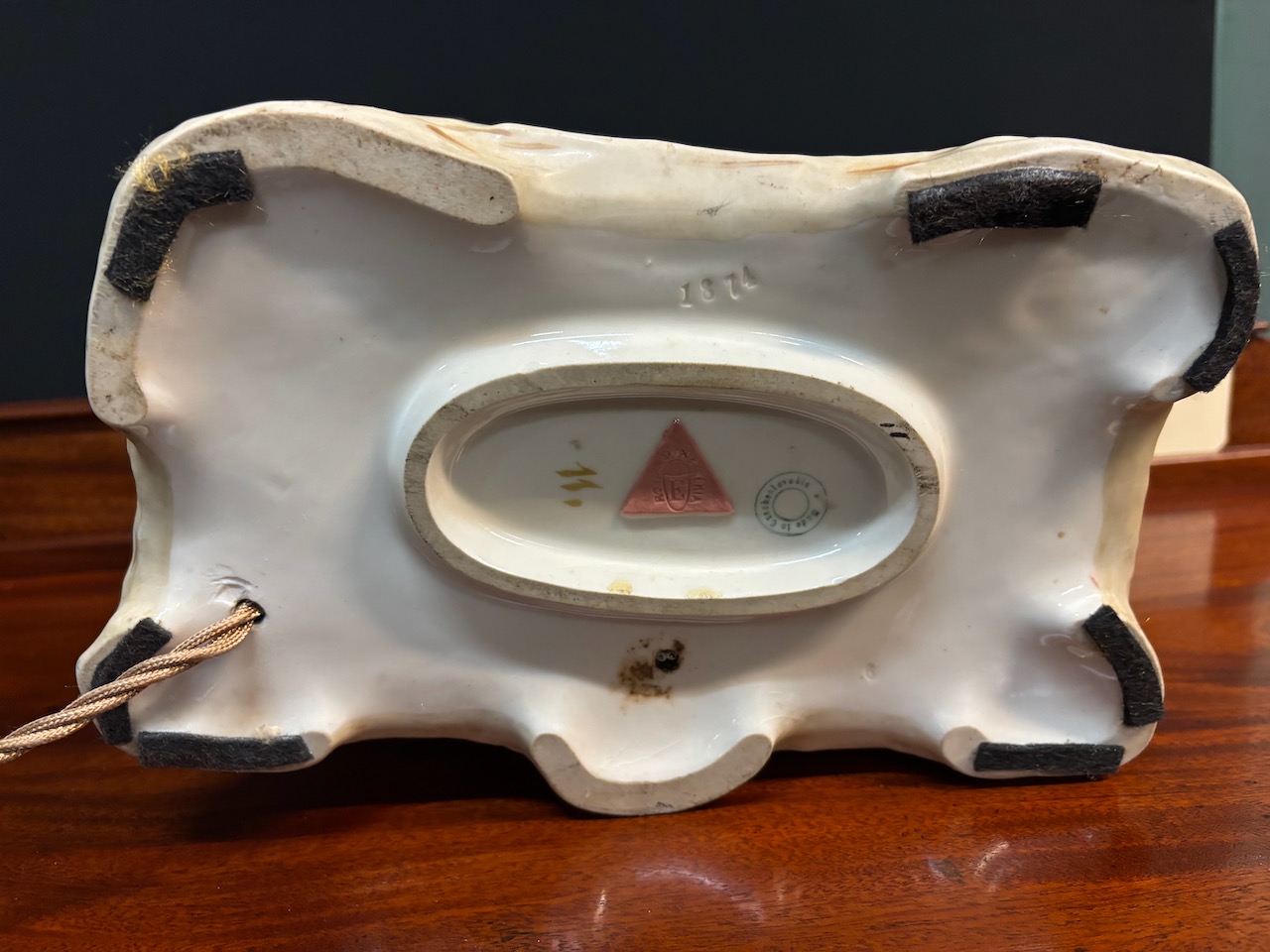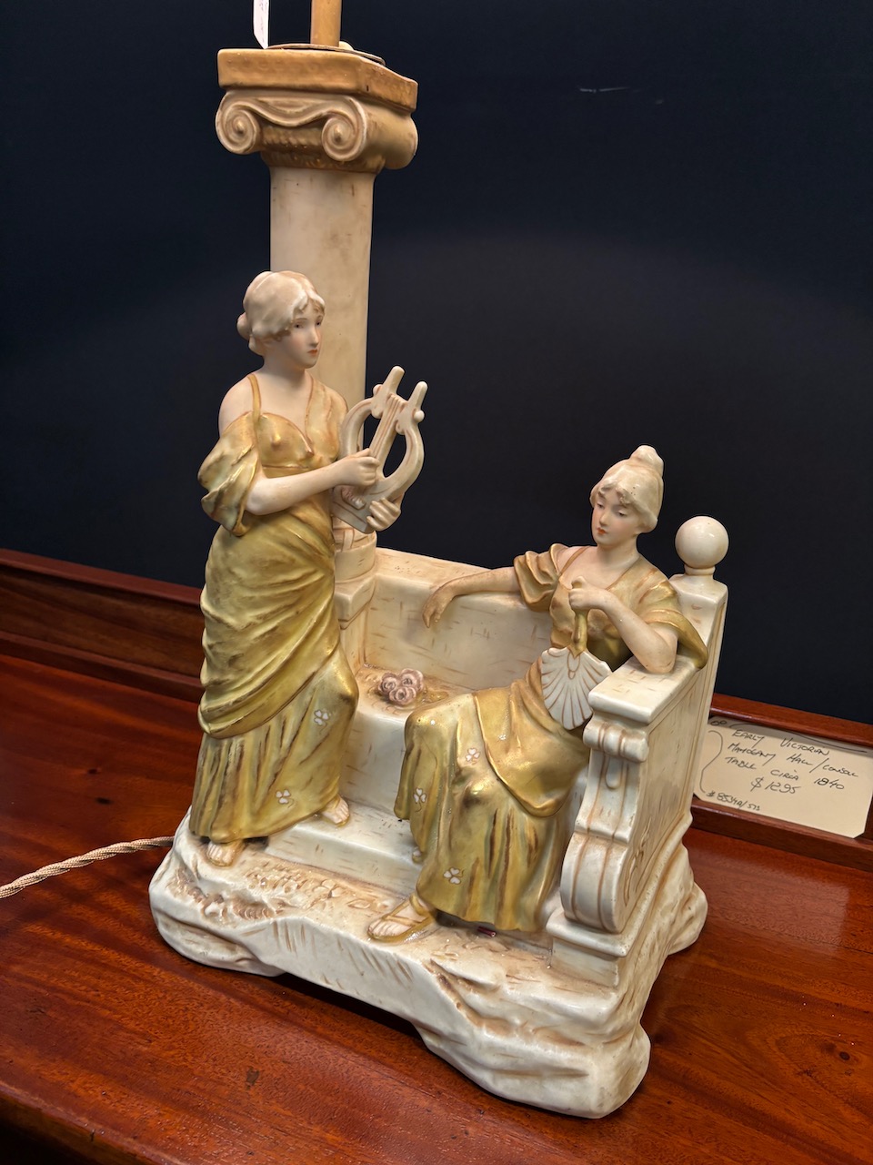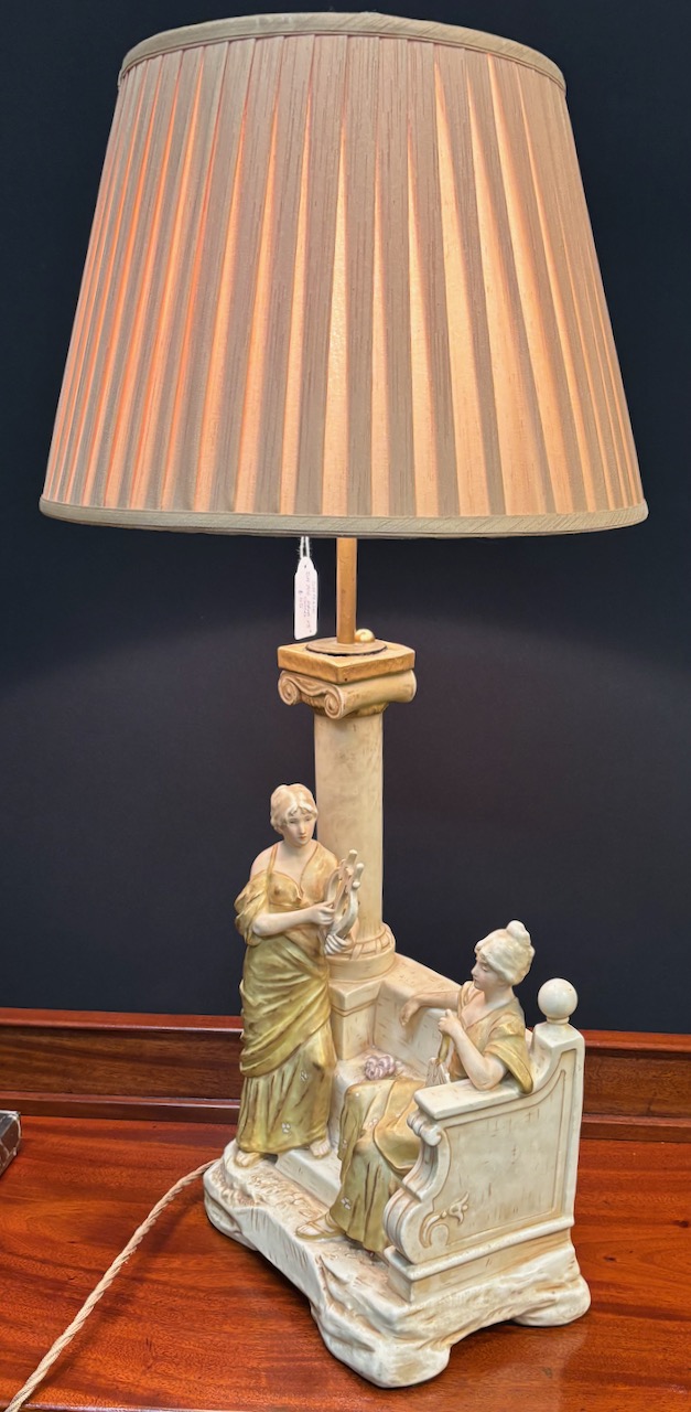 Quality Royal Dux Bisque Figural table lamp in re wired condition with gold silk cord .
