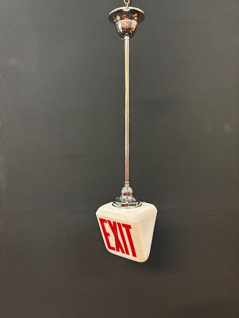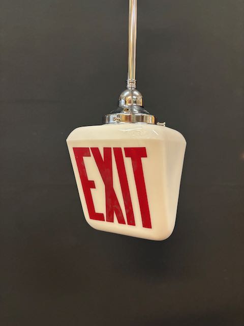 Pair of AmericanExit signs with red lettering with re wired chrome rods
