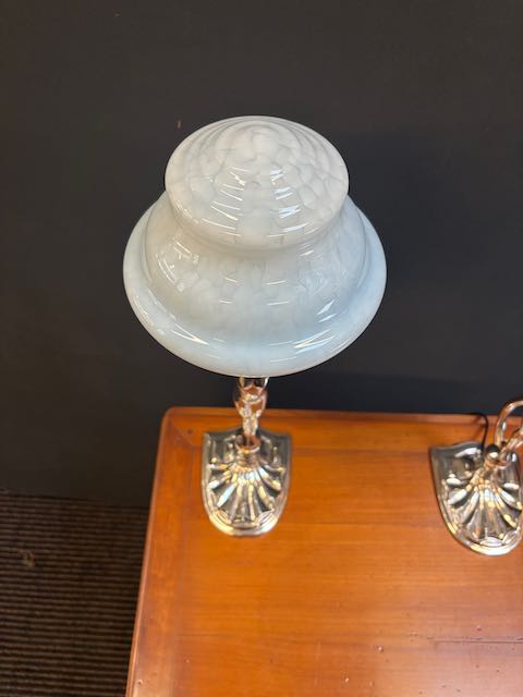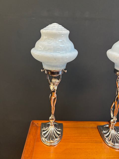 Pair of Art Deco style Diana lamps with original Art Deco blue shades in re wired condition .