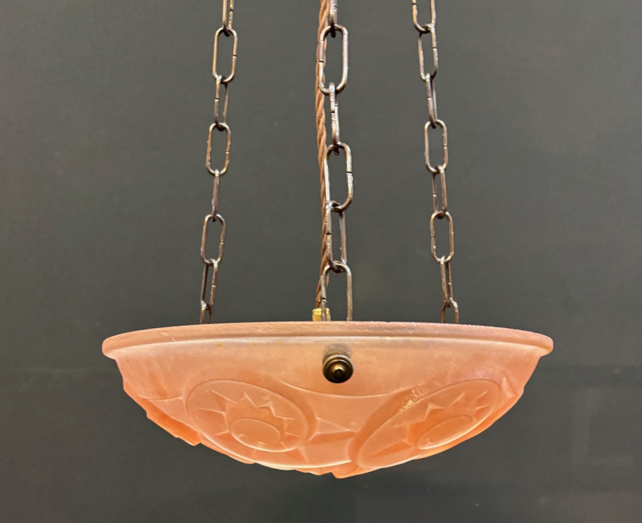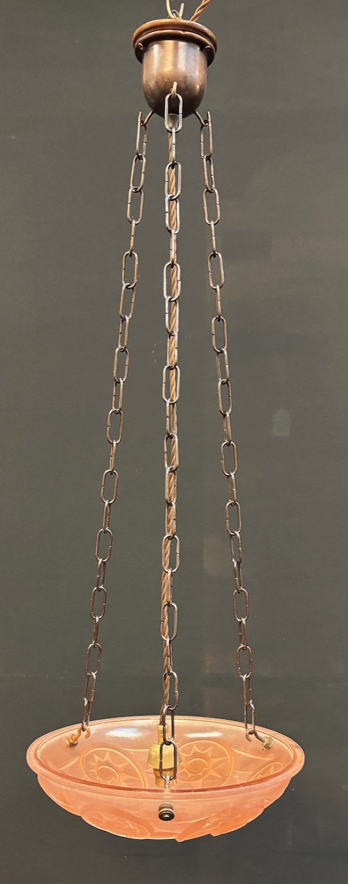 Original French Art Deco moulded pink glass shade