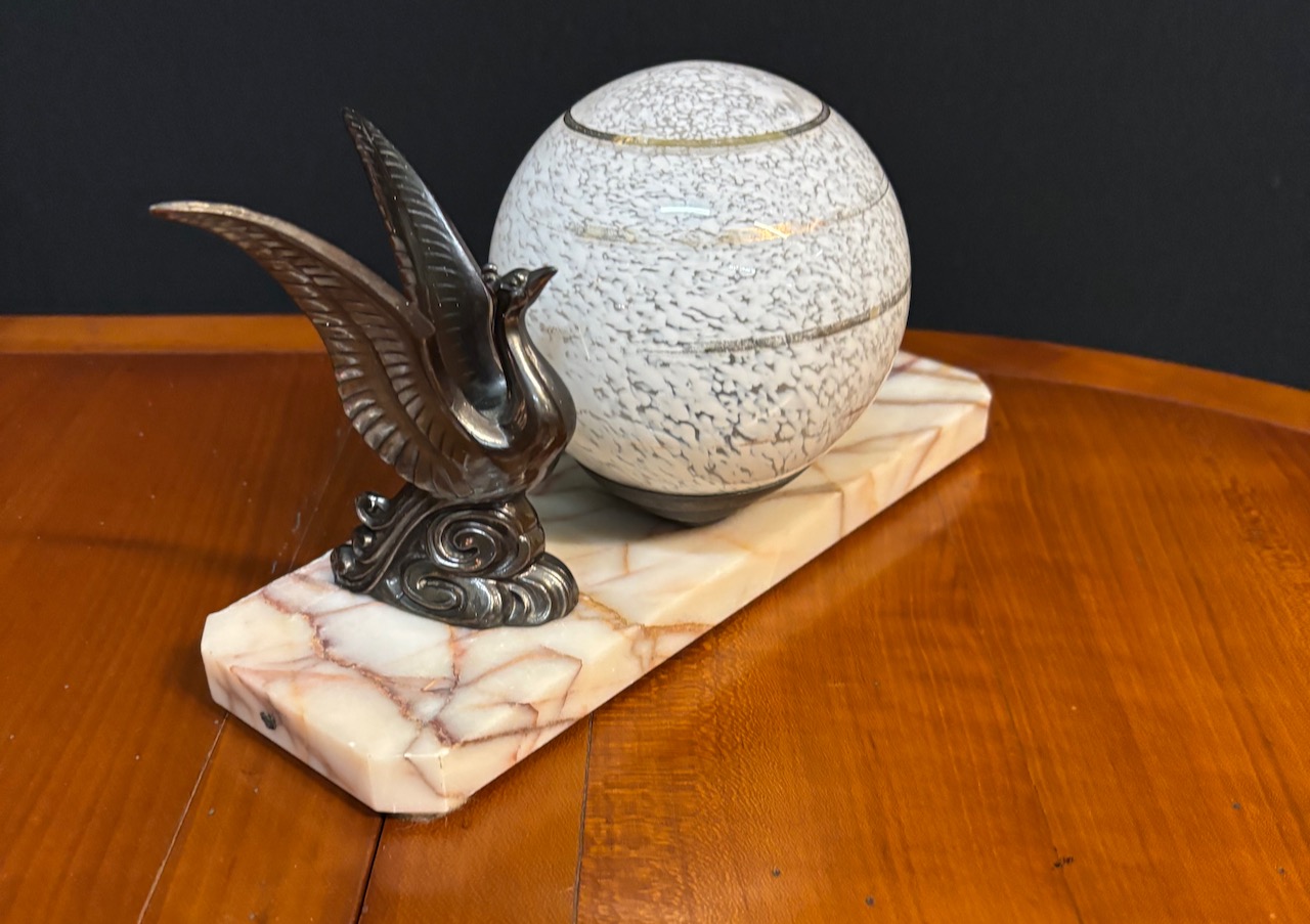Original Art Deco swan lamp on marble base in re wired condition