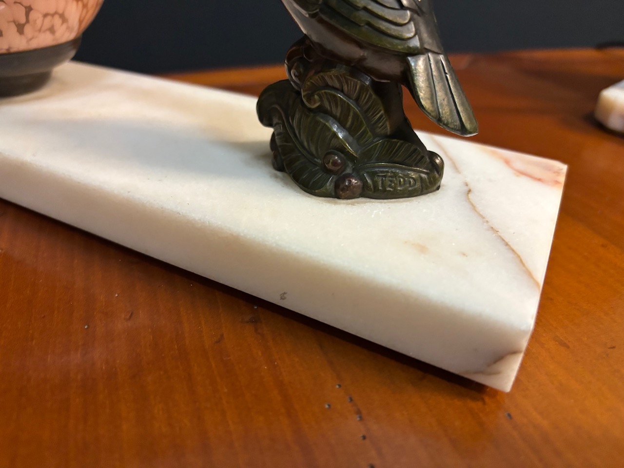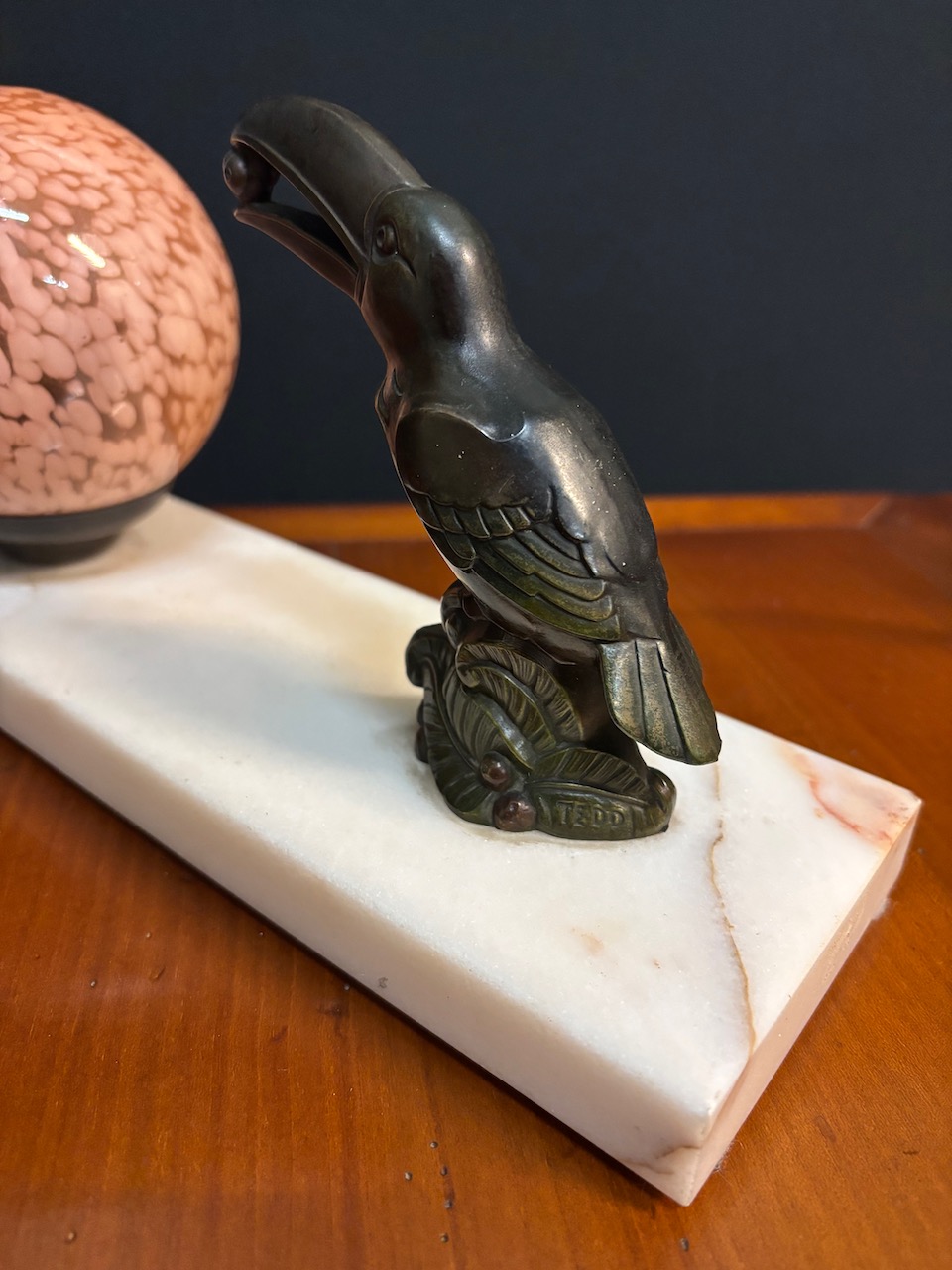 Original Art deco French Toucan lamp on marble base