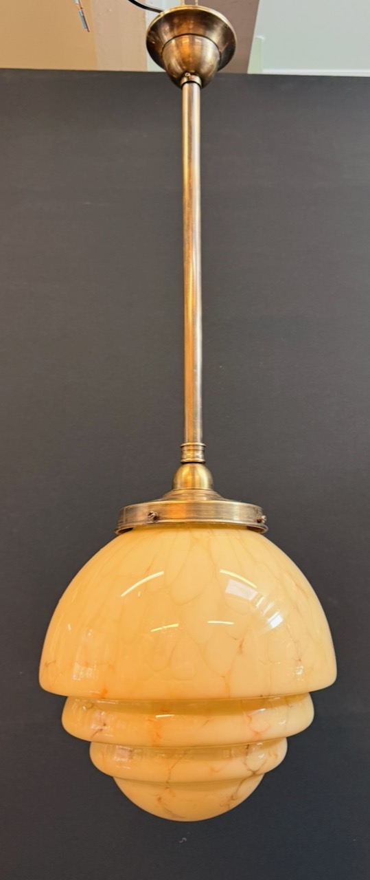 Large cream/brown deco pendant shade with re wired antique brass rodset