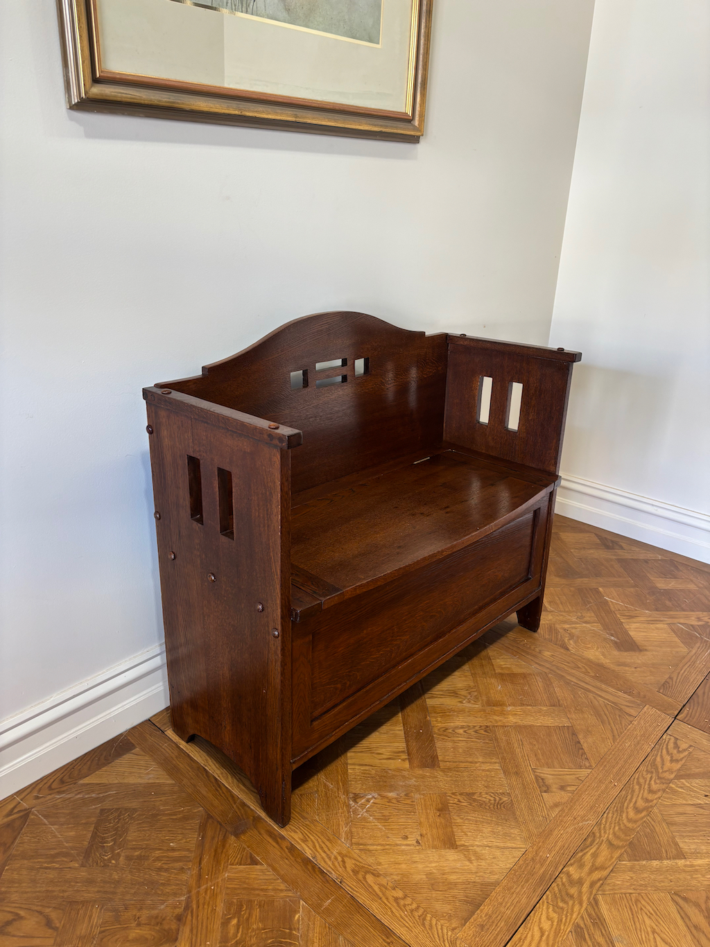Arts and Crafts Oak hall Seat in restored condition circa 1915