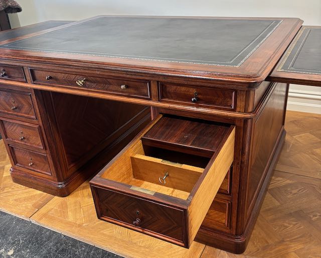 Quality French Twin Pedestal Rosewood desk in restored condition