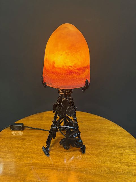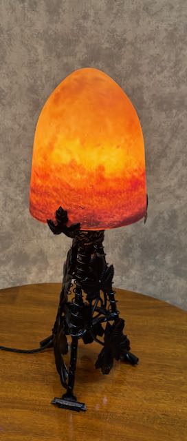 French Wrought Iron Table Lamp in re wired condition with black silk cord