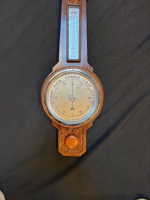 English Oak barometer in good clean detailed condition