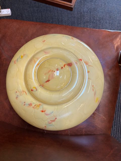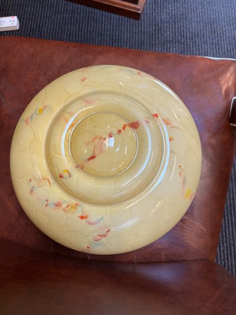 Art Deco bowl cream with red and blue veining