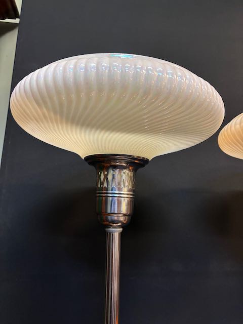 American chrome Torchieri floor lamp with original luster shades