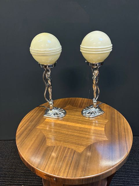 Pair Of Art Deco style solid brass chromed Diana lamps in re wired condition