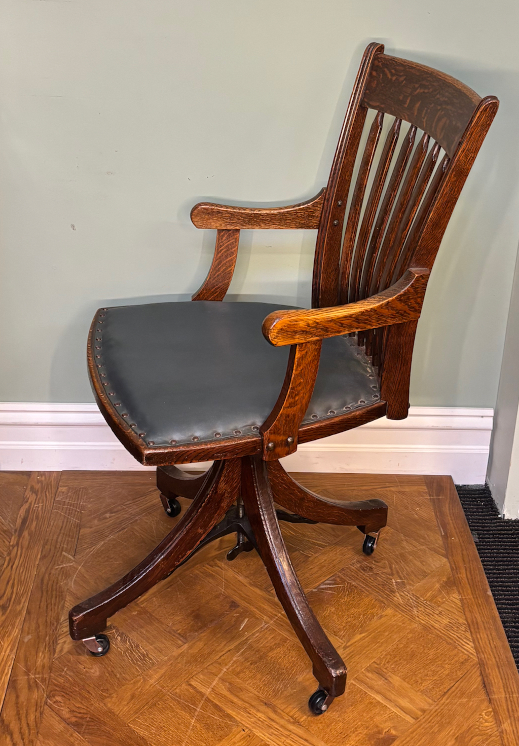 Edwardian Cutler American Oak desk chair in good clean detailed condition