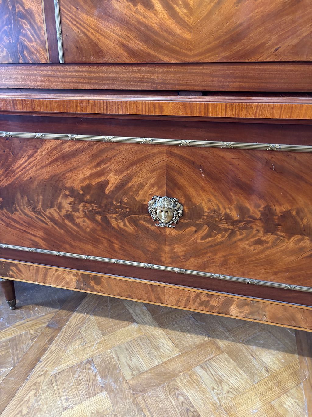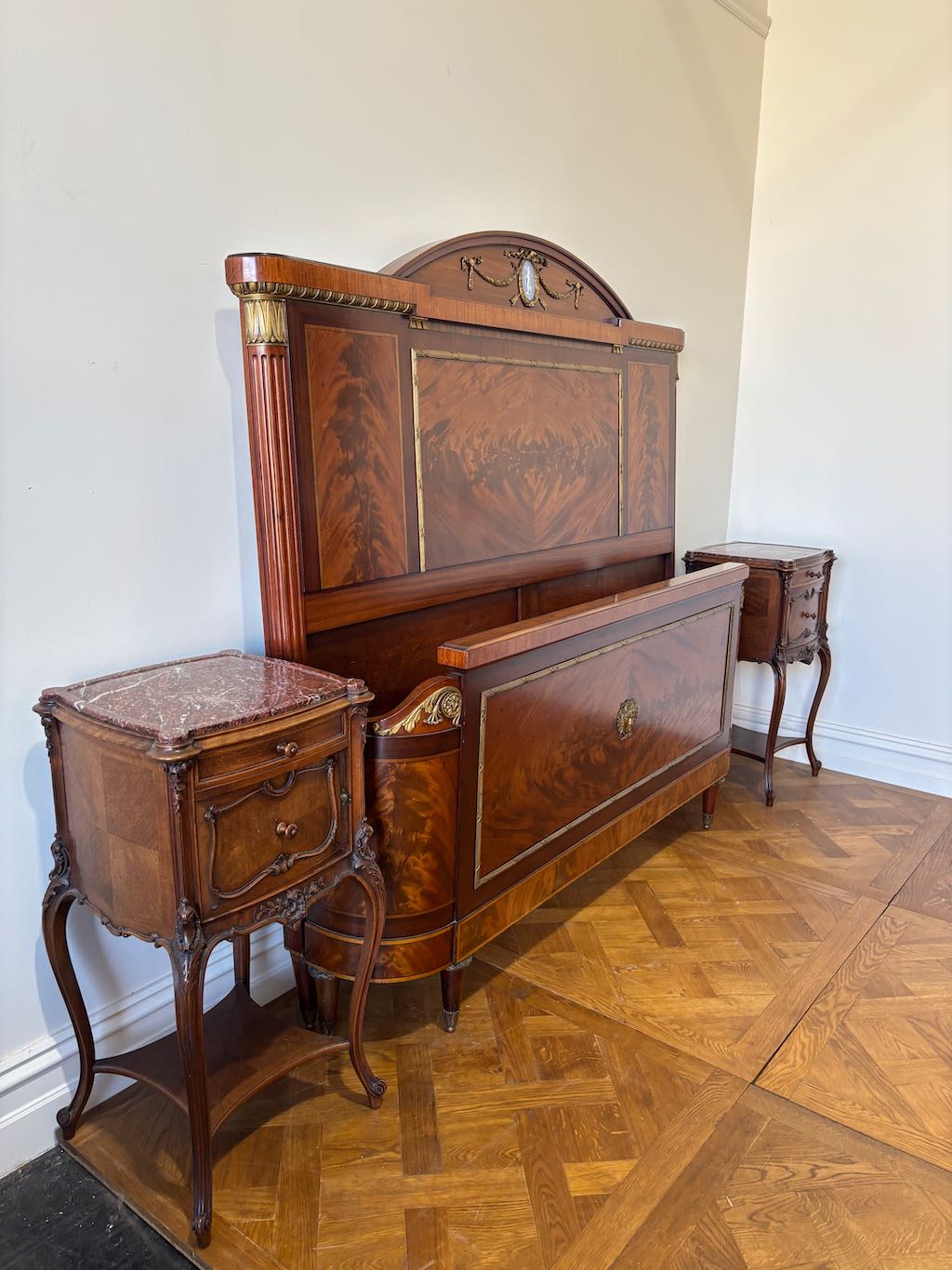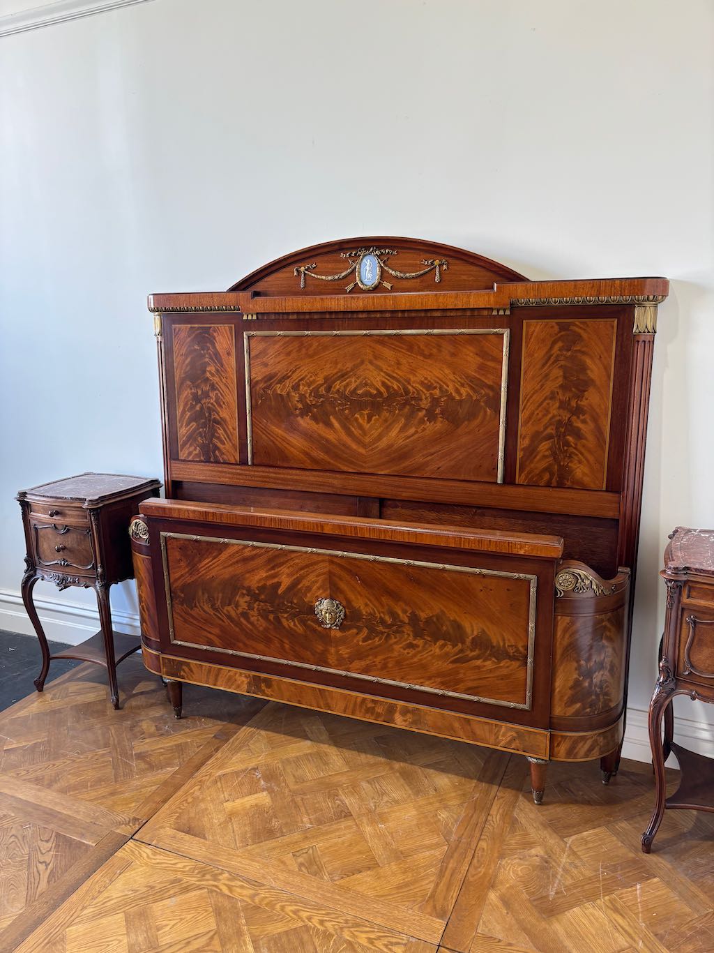 Quality French Empire style queen size bed with original ext side rails and slat base